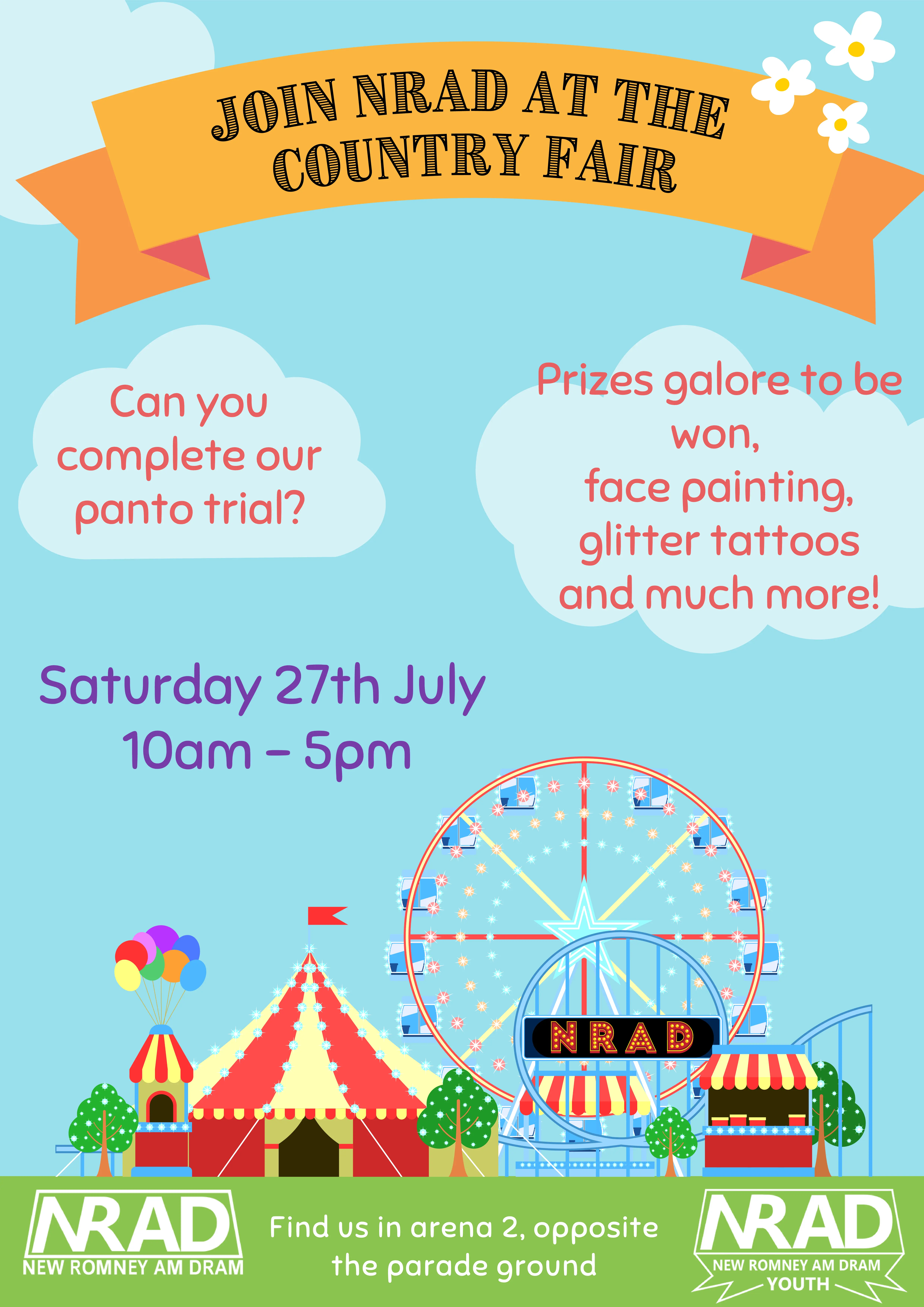 New Romney Am Dram (NRAD) was formed in Autumn 2017, our first production was a pantomime called "Jack Frost's Easter Adventure" which we performed in 2018 over the Easter Holidays, which was the first time many of us had performed on stage!